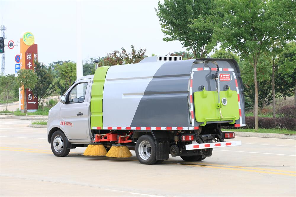 1.采用吸掃混合的方式收集垃圾,濕式除塵、電液,液壓傾翻卸料的作業(yè)方式對(duì)路面進(jìn)行清掃作業(yè)。
