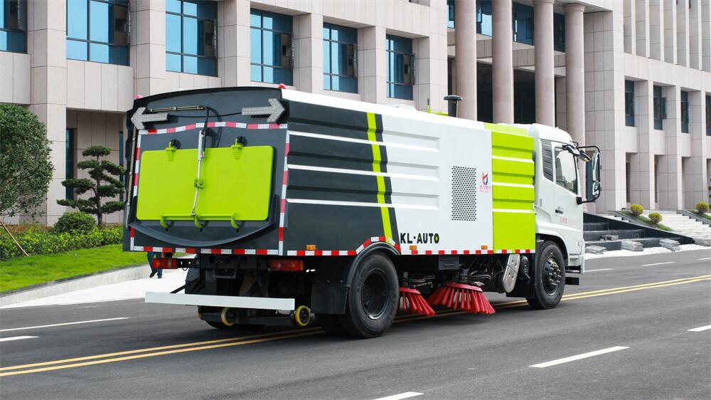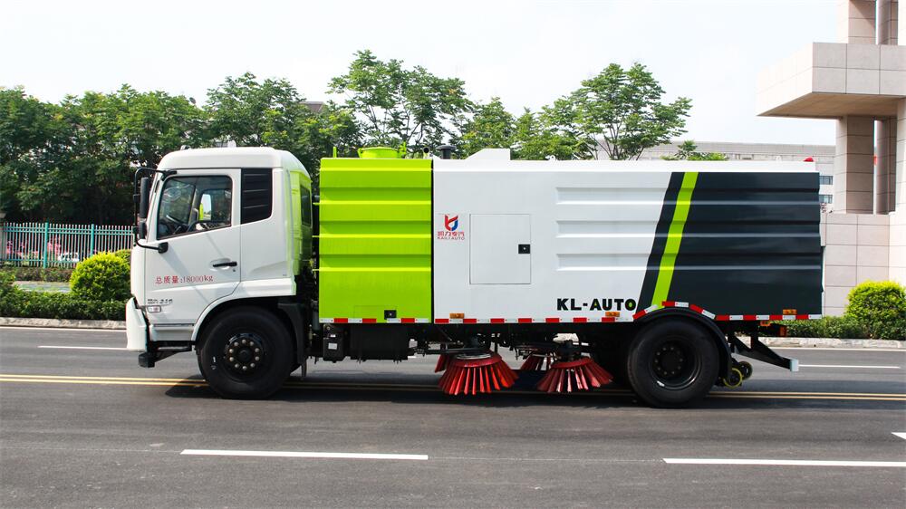 1.采用吸掃混合的方式收集垃圾,濕式除塵、電液,液壓傾翻卸料的作業方式對路面進行清掃作業。