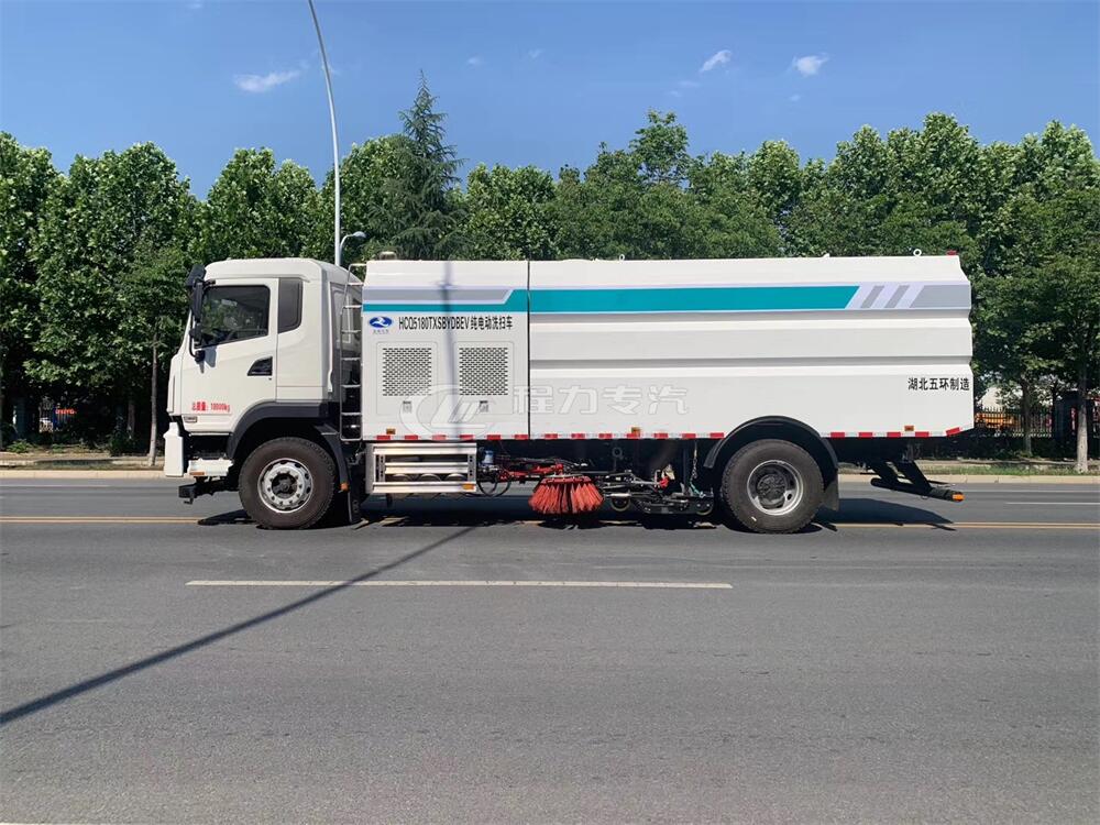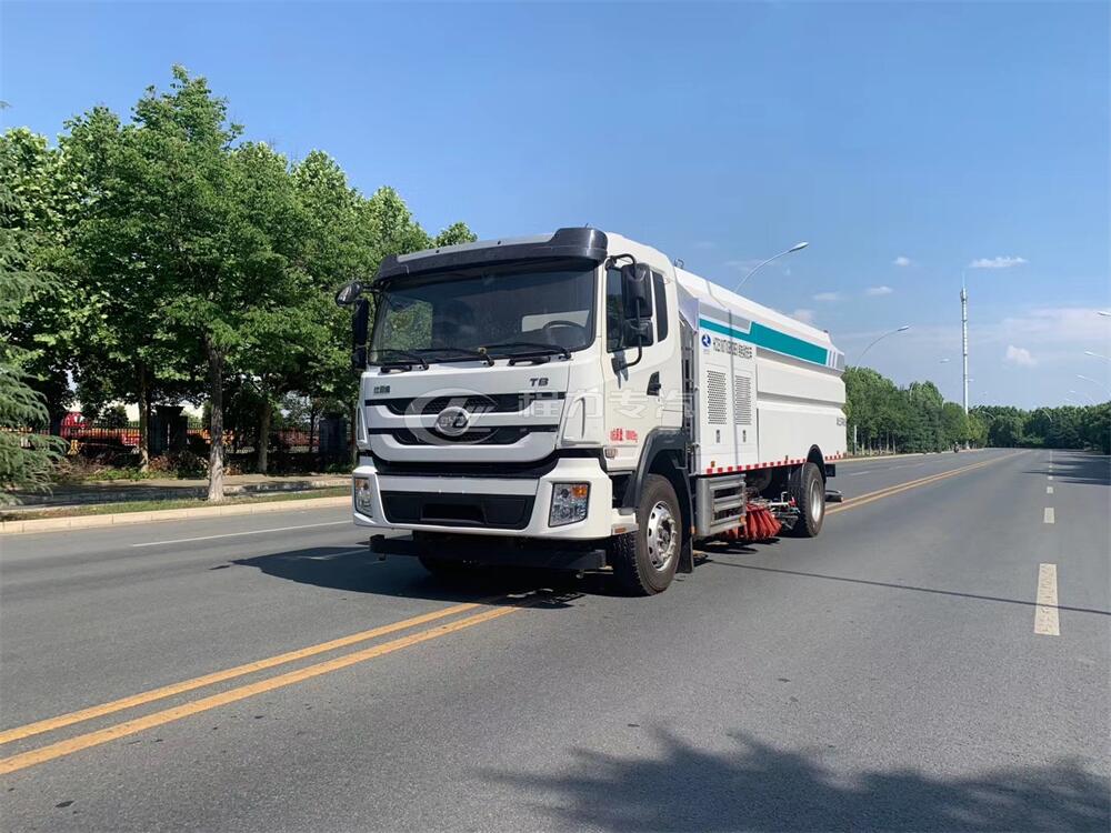 1)該車集掃路車和高壓清洗車功能于一體,具備路面清掃、路面洗刷、高壓清洗、路緣石洗刷、垃圾收集、污水回收、噴霧降塵和道路隔離墻清洗、小廣告清洗等多種作業(yè)功能。
