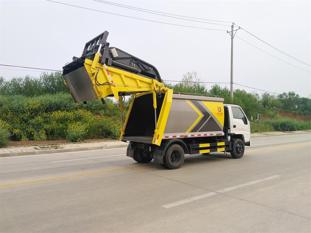 上裝配置:垃圾箱容積:6方,新款平面弧形廂體,廂體材料為武鋼優(yōu)質(zhì)碳鋼,PLC一鍵操作**,手電一體操作模式,兩側(cè)雙電控,帶駕駛室內(nèi)操作,底板支撐加強(qiáng),雙向壓縮,開(kāi)放式易清潔污水箱。壓縮式垃圾車(chē)采用機(jī)電液一體化技術(shù),借助機(jī)、電、液聯(lián)合自動(dòng)**系統(tǒng)、電腦**、手動(dòng)操作系統(tǒng),通過(guò)填裝器和推鏟等專(zhuān)用裝置,實(shí)現(xiàn)垃圾倒入、壓碎或壓扁、強(qiáng)力裝填,把垃圾擠入車(chē)廂并壓實(shí)和推卸,污水全部進(jìn)入污水廂,解決了垃圾運(yùn)輸過(guò)程中的二次污染的問(wèn)題。壓縮式垃圾車(chē)具有自動(dòng)反復(fù)壓縮以及蠕動(dòng)壓縮功能,壓縮比高、密封性好、裝載量大﹑操作方便、環(huán)保性好﹑整車(chē)?yán)霉β矢叩葍?yōu)點(diǎn)。作業(yè)自動(dòng)化,垃圾收集方式簡(jiǎn)便、高效。后翻轉(zhuǎn)機(jī)構(gòu)選裝:1、掛塑料桶式翻轉(zhuǎn)機(jī)構(gòu);2、掛鐵桶式翻轉(zhuǎn)機(jī)構(gòu);3、擺臂式翻轉(zhuǎn)機(jī)構(gòu); 4、簸箕斗式翻轉(zhuǎn)機(jī)構(gòu)。