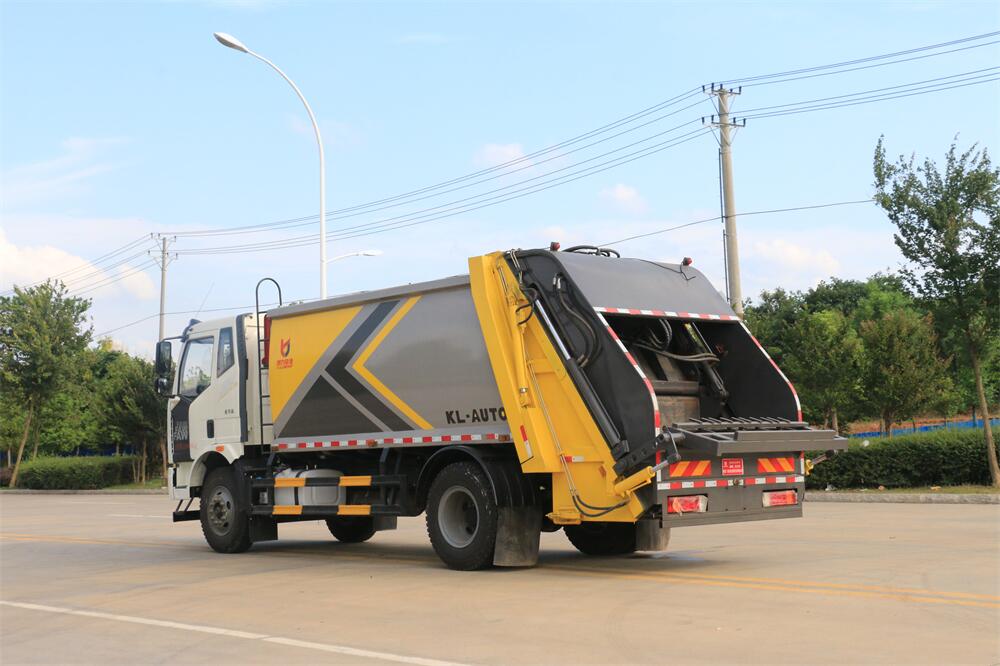 上裝配置:垃圾箱容積:12方,新款平面弧形廂體,廂體材料為武鋼優(yōu)質(zhì)碳鋼,PLC一鍵操作**,手電一體操作模式,兩側(cè)雙電控,帶駕駛室內(nèi)操作,底板支撐加強(qiáng),雙向壓縮,開(kāi)放式易清潔污水箱。壓縮式垃圾車(chē)采用機(jī)電液一體化技術(shù),借助機(jī)、電、液聯(lián)合自動(dòng)**系統(tǒng)、電腦**、手動(dòng)操作系統(tǒng),通過(guò)填裝器和推鏟等專(zhuān)用裝置,實(shí)現(xiàn)垃圾倒入、壓碎或壓扁、強(qiáng)力裝填,把垃圾擠入車(chē)廂并壓實(shí)和推卸,污水全部進(jìn)入污水廂,解決了垃圾運(yùn)輸過(guò)程中的二次污染的問(wèn)題。壓縮式垃圾車(chē)具有自動(dòng)反復(fù)壓縮以及蠕動(dòng)壓縮功能,壓縮比高、密封性好、裝載量大﹑操作方便、環(huán)保性好﹑整車(chē)?yán)霉β矢叩葍?yōu)點(diǎn)。作業(yè)自動(dòng)化,垃圾收集方式簡(jiǎn)便、高效。后翻轉(zhuǎn)機(jī)構(gòu)選裝:1、掛塑料桶式翻轉(zhuǎn)機(jī)構(gòu);2、掛鐵桶式翻轉(zhuǎn)機(jī)構(gòu);3、擺臂式翻轉(zhuǎn)機(jī)構(gòu); 4、簸箕斗式翻轉(zhuǎn)機(jī)構(gòu)。