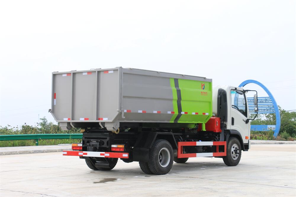 勾臂式垃圾車(車廂可卸式垃圾車)介紹: 車廂可卸式垃圾車又叫拉臂式垃圾車,是一種采用高新設計可伸縮的鉤臂,實現垃圾廂的二次吊裝,自吊上放下,可自行傾倒垃圾的環衛設備。 拉臂式垃圾車結構簡單,操作穩定方便,裝卸效率高,機械化程度高,節省人力。鉤臂垃圾車一車可帶多個垃圾廂,在裝卸的運輸過程中可有效地避免二次污染。 拉臂垃圾車采用高新設計可擺動的鉤臂,垃圾箱由框架、開啟油缸、滑輪、后門和若干加強框架與鋼板焊接而成。調換貨廂快捷方便,貨廂上帶蓋(倒垃圾時可翻開),鉤臂垃圾車垃圾廂體可選用碳鋼、不銹鋼材質、內部采取環氧樹脂防腐處理,改裝部分與原車底盤為可分離式,維修方便且保持了原車的機動性及行駛性能。