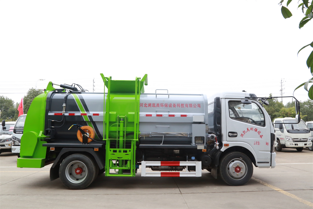 上裝配置:罐體容積8m3,配備120L/240L掛桶提升翻轉(zhuǎn)機(jī)構(gòu),液壓系統(tǒng),后蓋液壓鎖緊開啟,罐體可以舉升自卸,尾部帶自流閥;用于運(yùn)輸液態(tài)垃圾,其特點(diǎn)操作簡單,密封性好,無泄漏,無異味;可選裝固液分離功能,推板擠壓功能,常用于餐館的垃圾轉(zhuǎn)運(yùn)處理。