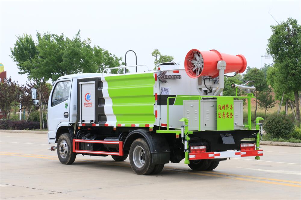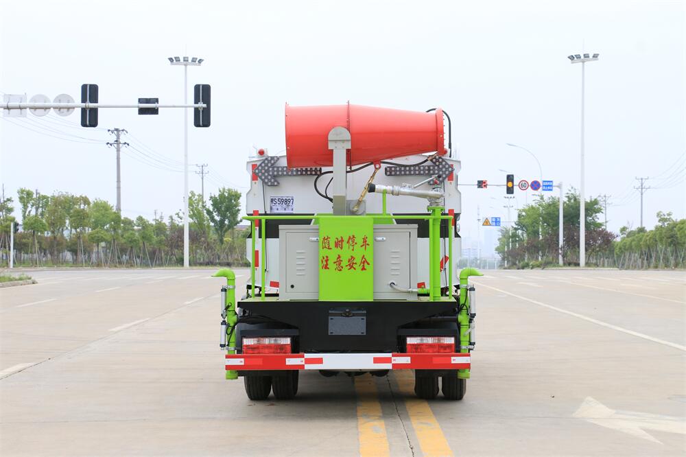 上裝配置:罐體容積為 5-7立方,選配風送式霧炮機組射程30米、40米、50米、60米、80米、100米、120米霧炮,罐體鋼板為4mm碳鋼Q235材質(zhì),罐內(nèi)隔板具有防波作用,以減輕汽車行駛時罐體液體沖擊,罐體及整車外形尺寸按照公告。帶大功率專用灑水泵,泵可自吸自排,整車前沖、后灑、側(cè)噴、帶65消防接口,后平臺配CLW-50、CLW-60、CLW-80、CLW-100、CLW-120型風送式霧炮機組;罐體前封頭配大功率柴油發(fā)電機組;前封頭帶水位計,后平臺主管路帶1寸澆花接口,后爬梯。帶兩根輸水管及陰陽端。罐體顏色:銀/灰/綠,罐體兩側(cè)噴“多功能抑塵車”字樣,貼反光標示。