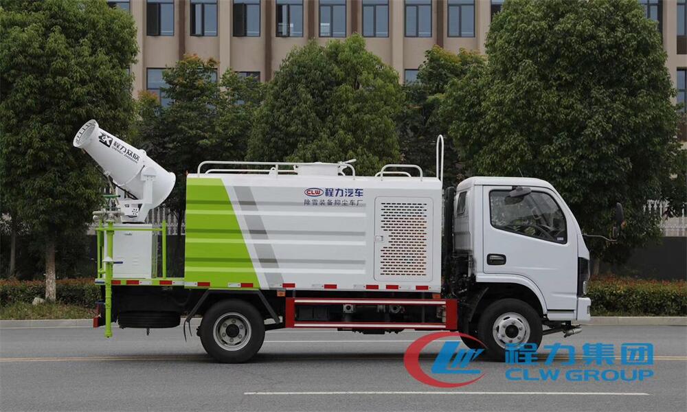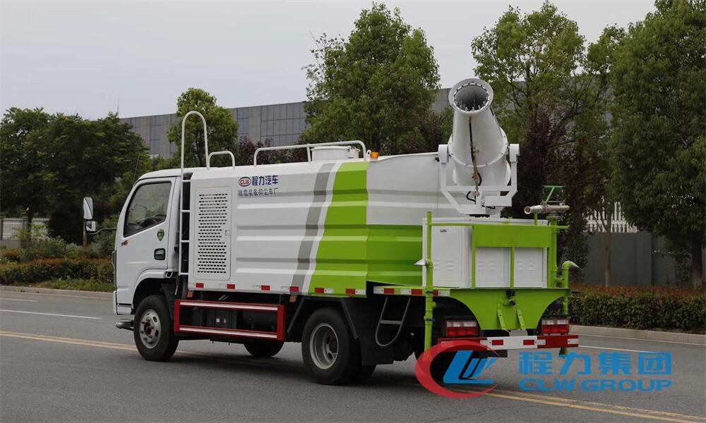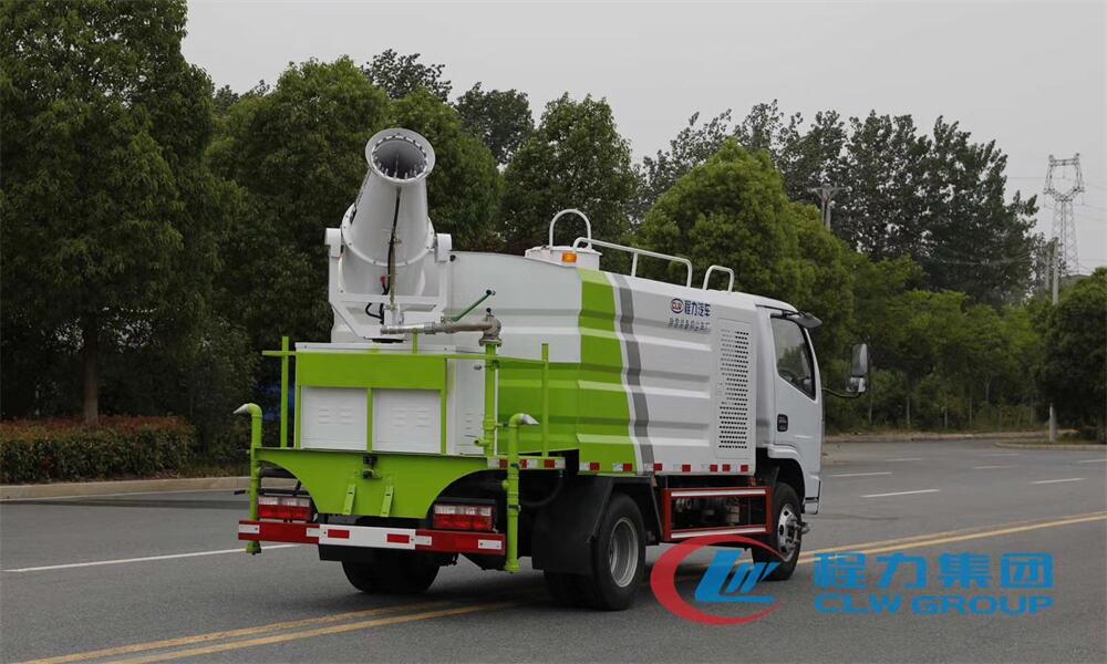 上裝配置:罐體容積為 5-7立方,選配風(fēng)送式霧炮機(jī)組射程30米、40米、50米、60米、80米、100米、120米霧炮,罐體鋼板為4mm碳鋼Q235材質(zhì),罐內(nèi)隔板具有防波作用,以減輕汽車行駛時(shí)罐體液體沖擊,罐體及整車外形尺寸按照公告。帶大功率專用灑水泵,泵可自吸自排,整車前沖、后灑、側(cè)噴、帶65消防接口,后平臺(tái)配CLW-50、CLW-60、CLW-80、CLW-100、CLW-120型風(fēng)送式霧炮機(jī)組;罐體前封頭配大功率柴油發(fā)電機(jī)組;前封頭帶水位計(jì),后平臺(tái)主管路帶1寸澆花接口,后爬梯。帶兩根輸水管及陰陽(yáng)端。罐體顏色:銀/灰/綠,罐體兩側(cè)噴“多功能抑塵車”字樣,貼反光標(biāo)示。