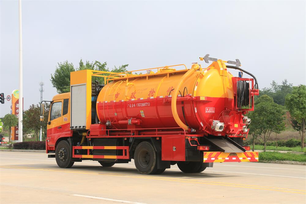 15方清洗吸污車-東風(fēng)天錦15方10+5清洗吸污兩用車-帶副發(fā)動(dòng)機(jī)圓罐紅黃色