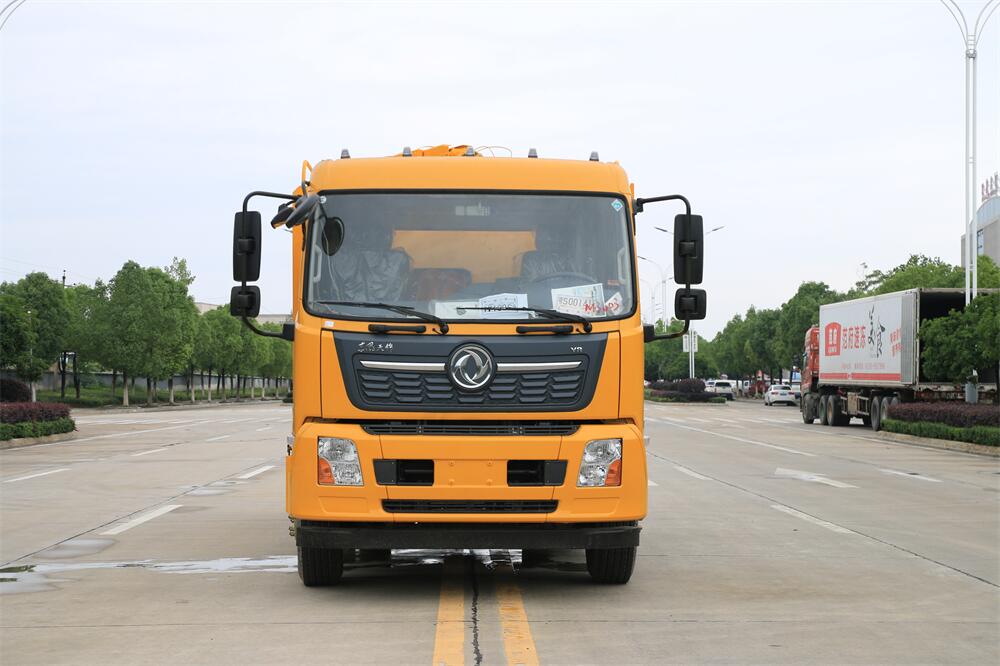 上裝配置:清水罐約 5 立方,污水罐約 10 立 方;罐體 8mm 厚,封頭 8mm 厚,水罐、污罐可 互通,用 100 球閥**開關;清洗部份采用天 津通潔高壓泵,壓力 19Mpa,流量 215L/min, 配 80 米直徑 22 高壓管帶液壓卷盤;吸污部份 采用濰柴375馬力副發動機帶山東SK-30水循 環泵(副發自帶),吸污罐帶舉升,后封頭焊 死(可選擇后封頭全開),尾部加裝一個 600mm 快開,罐體后尾部一個 DN150 排污口球閥,一 個 DN100 吸污球閥帶出口盤,一個視污窗,一 根 10m 吸污管,一套陰陽端,壓力表,防溢 閥,箭頭燈,工具箱,淋管裝置,高壓泵帶氣 吹水。配一個 4.5 公斤水雷噴頭,另帶一個 80 公分手持洗車噴頭。