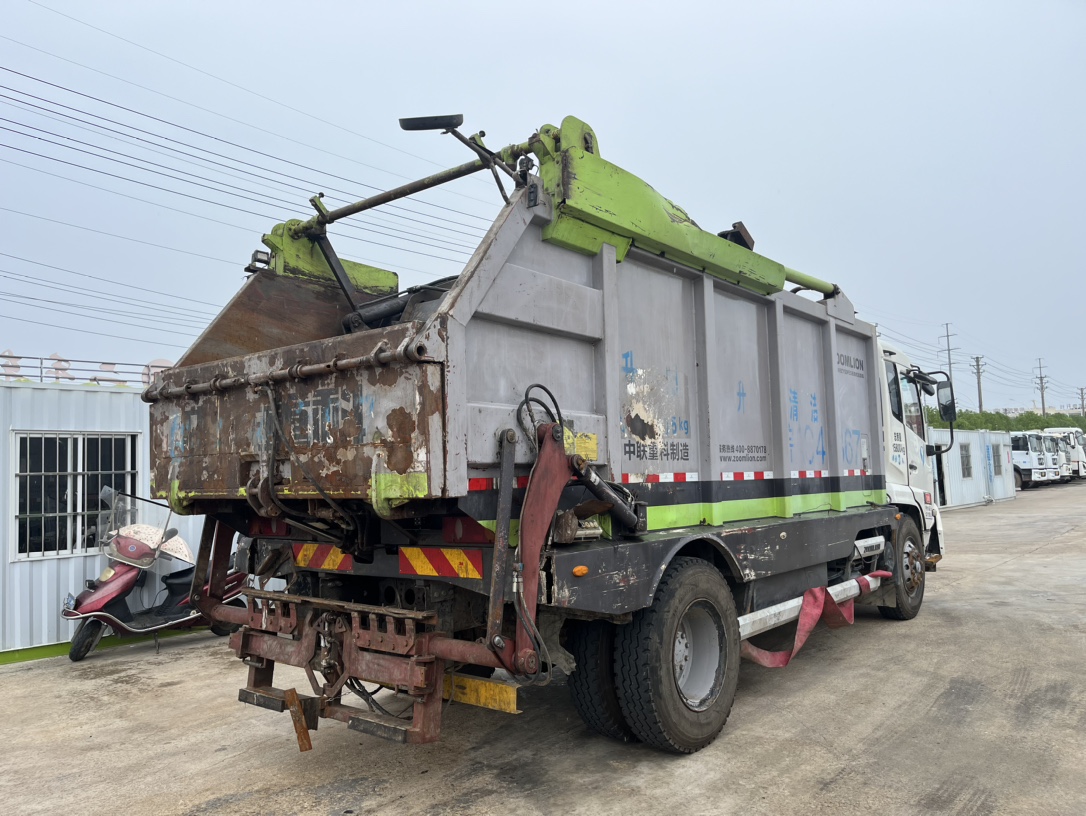 二手中聯無泄露式壓縮垃圾車 2??年份:2018年1月 3??發動機:康機210馬力,國五 4??底盤配置:東風天錦底盤,4500軸距,1000鋼絲胎,六檔變速